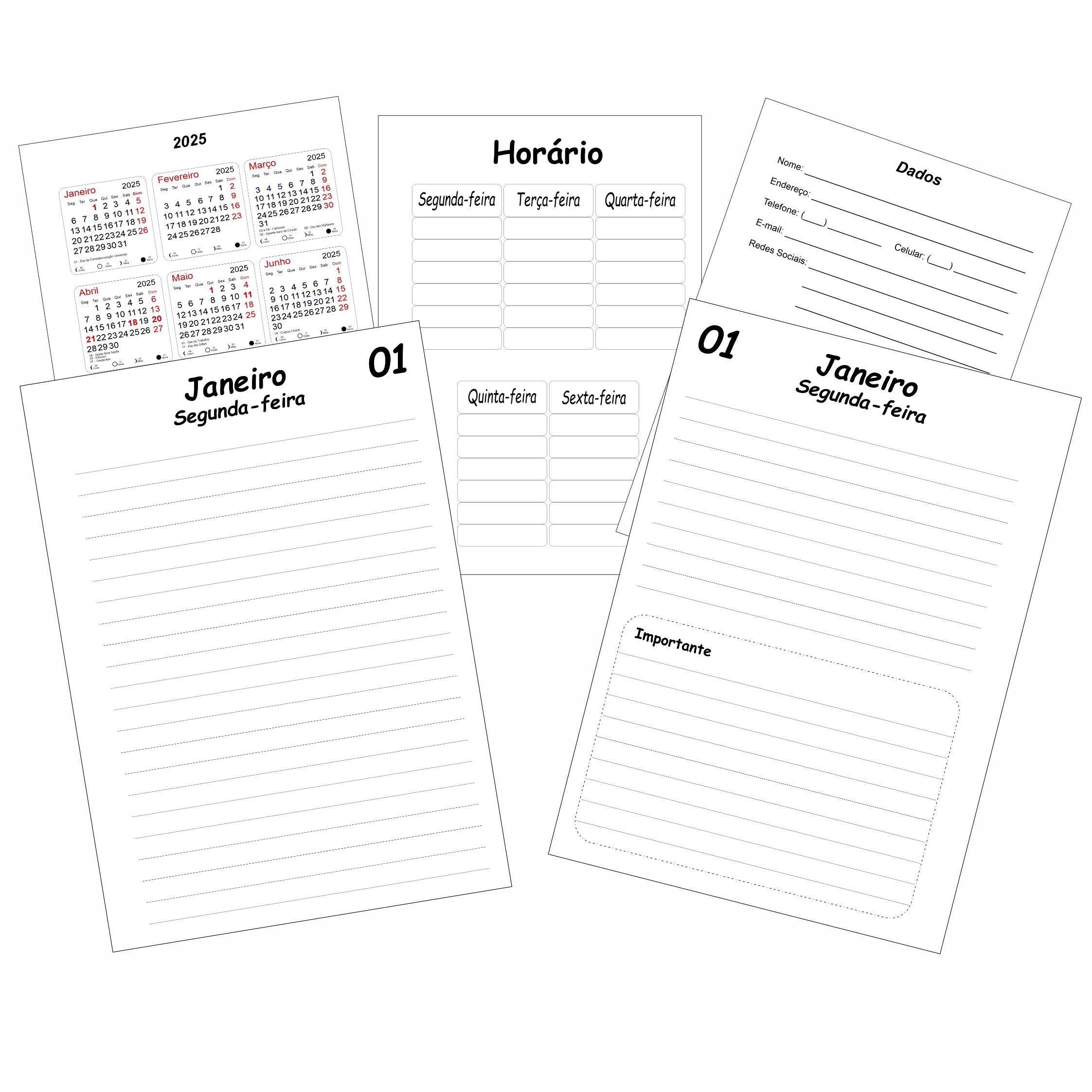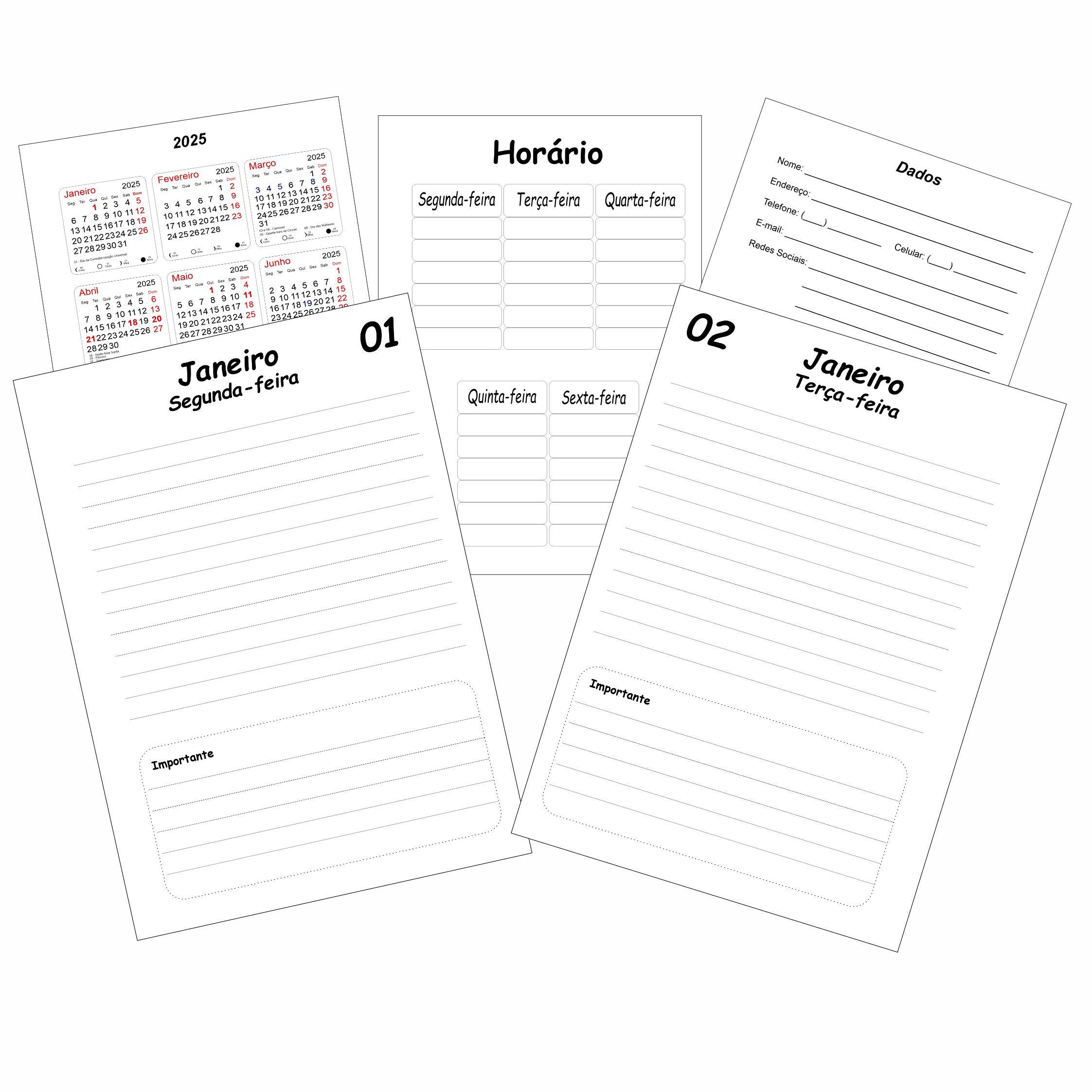 Dois dias por folha: é a ferramenta compacta ideal para organizar seus horários e tarefas com máxima eficiência.