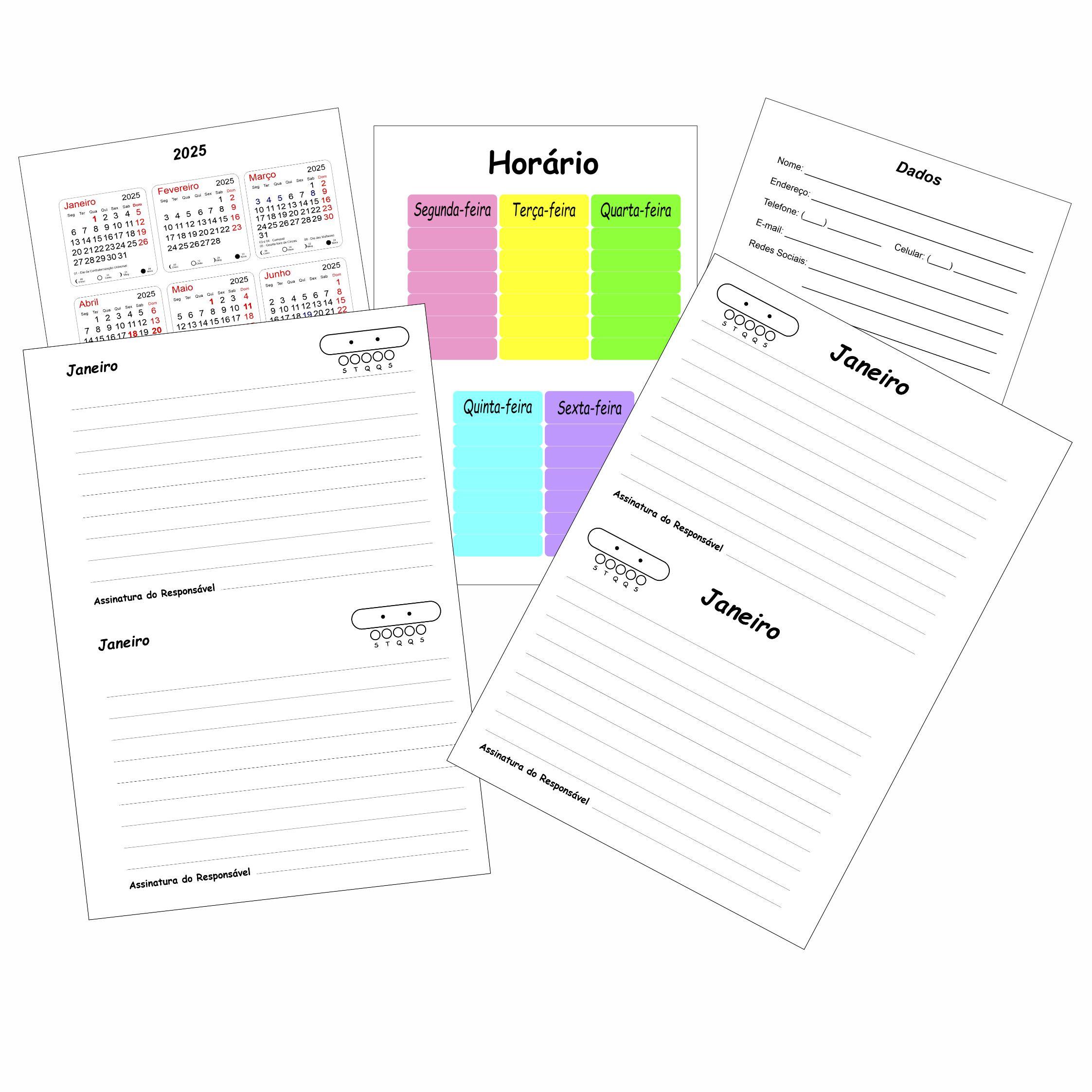 Permanente: é o jeitinho mais alegre e flexível de acompanhar a rotina escolar, com espaço para horários e assinatura dos responsáveis.