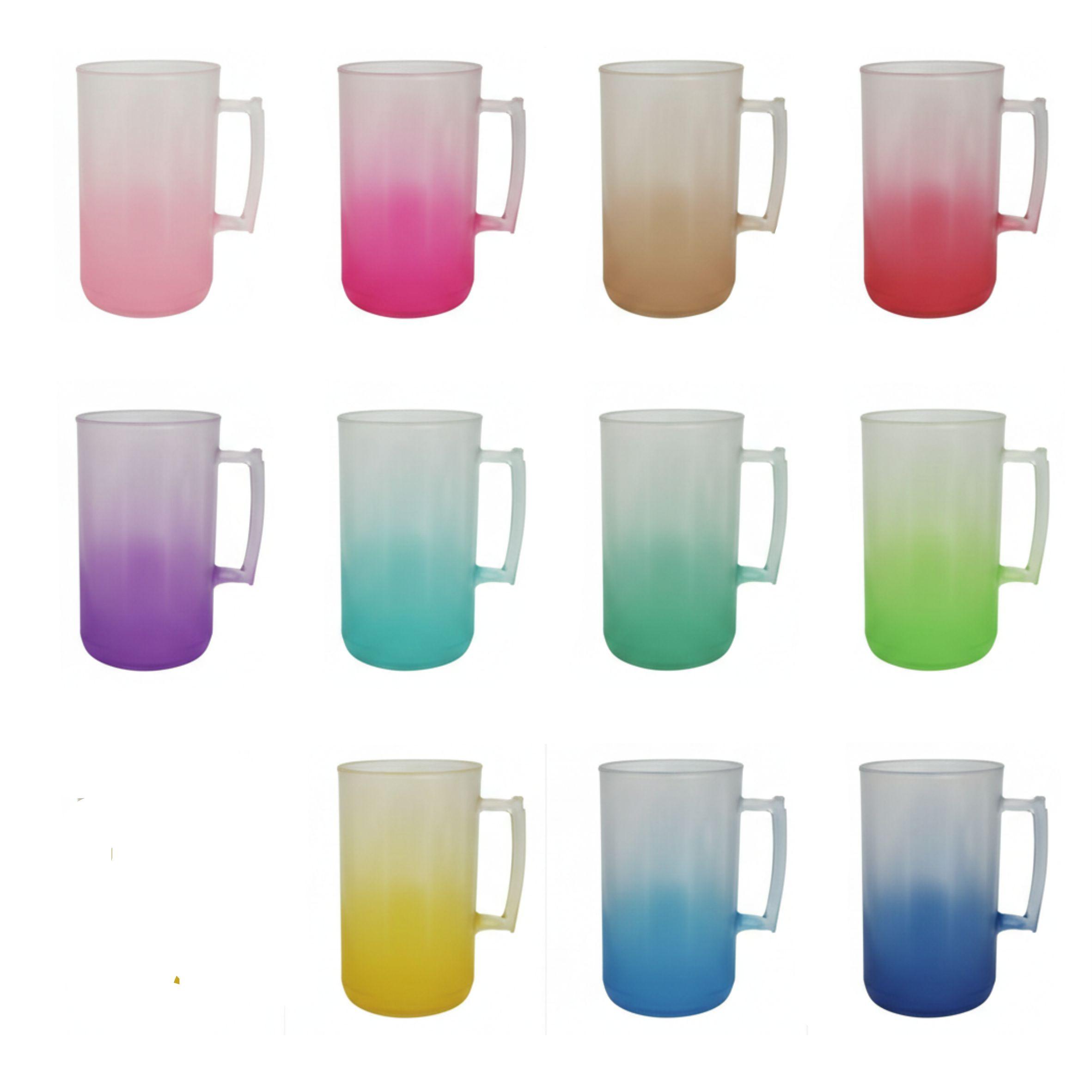 Opções em cores lisas (brilhantes), degrade ou jateadas (fosco).