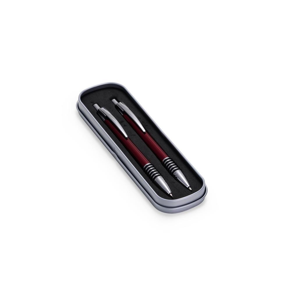 01 Caneta esferográfica (carga azul 1.0mm), 01 Lapiseira (grafite 0.7mm) e 01 estojo metálico protetor.